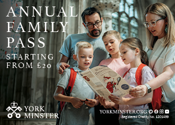 Free family-friendly tours – 29th June to 30th September 2024 – York Minster’s general admission tickets include a free guided tour of the cathedral. Throughout the summer months, our expert tour guides will explore the Minster’s rich history, with a special focus on the 1984 fire to commemorate its 40th anniversary. On Saturdays throughout the year, York Minster offers family-friendly discovery tours suitable for children aged 4+. Families can discover the answers to fun questions including ‘How many blue whales can fit inside the Minster?’ and ‘Which room has a special whispering trick?’, as well as learning more about the roof bosses designed by Blue Peter competition winners following the 1984 fire. Free with admission.